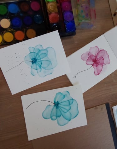 In this 2hour workshop we explore the flowing qualities of watercolor, play around with color and water and create loose designs.